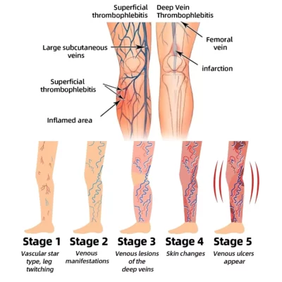 Varicose veins are a widespread condition often caused by damage to venous valves, leading to increased pressure in the veins. Initially, there may be no obvious symptoms, though some patients experience itching in the lower legs, swelling, and a feeling of heaviness after standing for long periods. As the condition progresses, localized pain can worsen, leading to blood stagnation, purple discoloration around the ankles, and in severe cases, skin issues and blood clots.