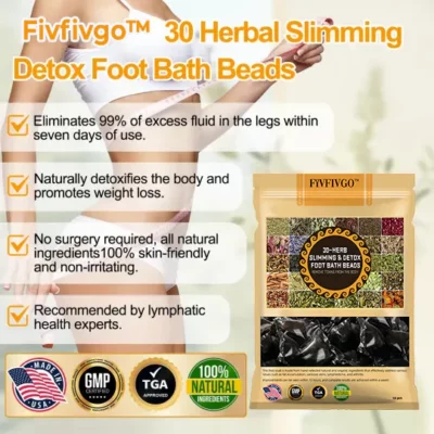 “I’ve battled lymphedema and weight gain for years. After extensive research, I came across Fivfivgo™ 30 Herbal Slimming & Detox Foot Bath Beads. After using them for four weeks, I experienced remarkable weight loss, and my swelling vanished. The best part is it’s completely natural and has a pleasant scent. It strengthens my immune system and detoxifies my lymphatic system. Now my legs, ankles, and feet feel much lighter, and I’m more active and energetic than ever. I feel lighter, more at ease, and confident in my appearance.” – Mariah Jenkins ⭐⭐⭐⭐⭐
