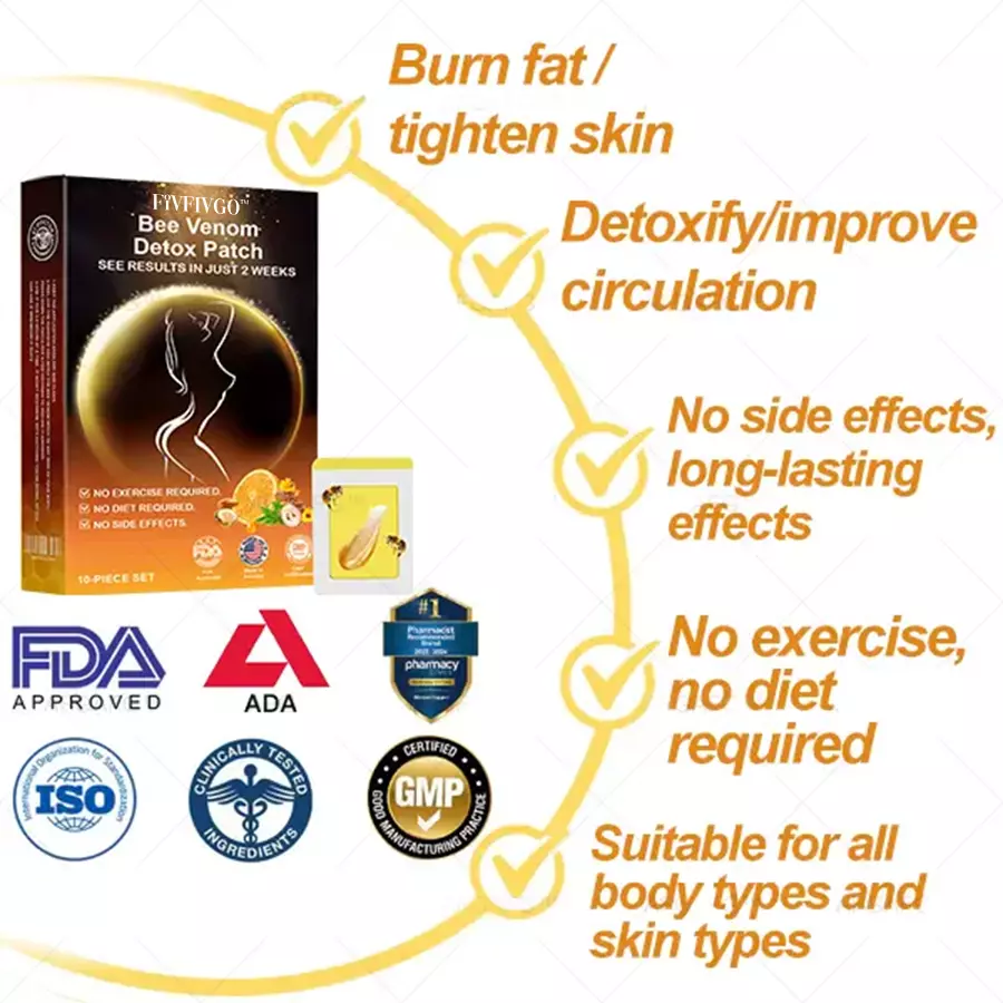 The Fivfivgo™ Bee Venom Firming Slimming Patch contains a unique blend of bioactive compounds, including purified bee venom, that targets multiple body concerns: