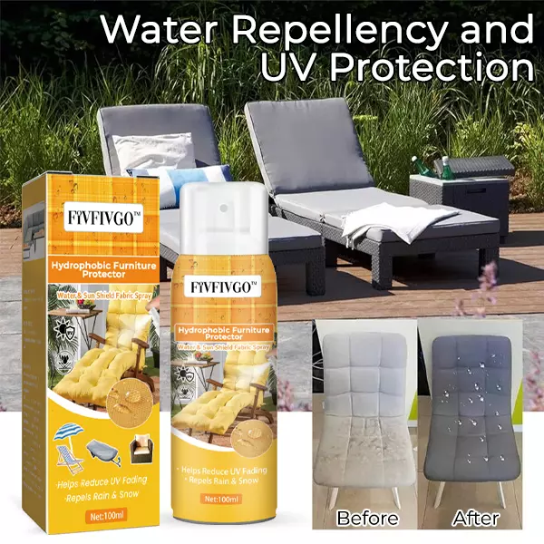 Fivfivgo™ Hydrophobic Furniture Protector offers advanced nanotechnology with a user-friendly, eco-friendly formula. Not only does it repel liquids and prevent stains, but it also helps preserve the vibrant colors of your furniture and adds UV protection to extend its life. Whether for your home, office, or outdoor furniture, Fivfivgo™ ensures that your surfaces stay beautiful and functional for years to come.