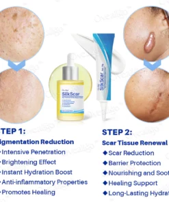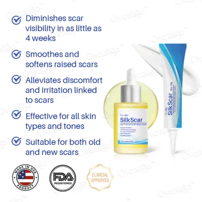 Fivfivgo™ SilkScar Serum and Cream utilize advanced ingredients that work together to improve scar appearance. The serum penetrates deeply to tackle pigmentation and promote healing, while the cream supplies essential nutrients for scar prevention and recovery.