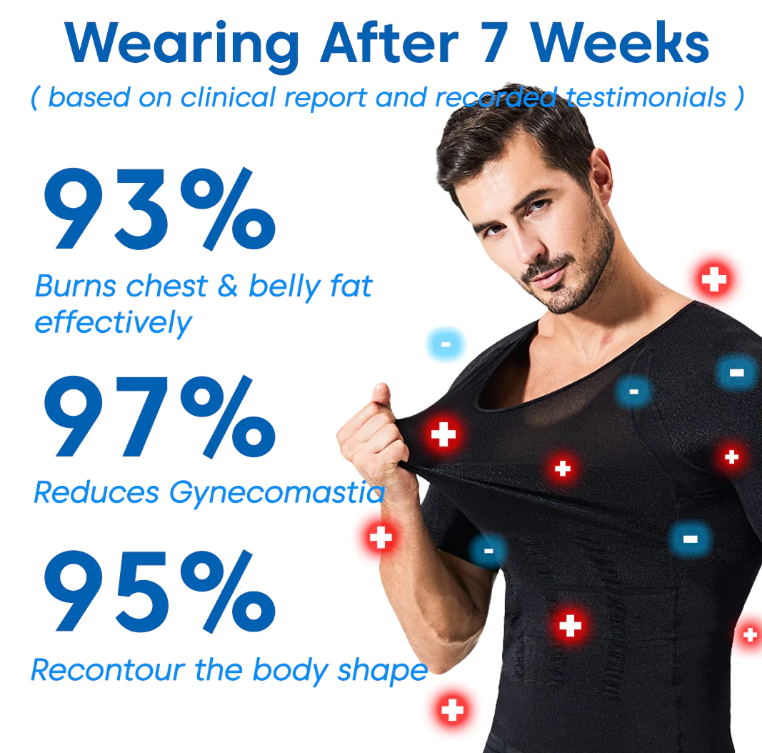 A revolutionary solution designed to address the common issue of gynecomastia and reduce the accumulation of fatty tissue. This cutting-edge undershirt goes beyond conventional compression wear, providing targeted sculpting and reshaping benefits. The Flashing® TechWear Ionic Sculpting Undershirt offers a full-body shaping effect, enhances sweating, and assisting in burning fat faster.