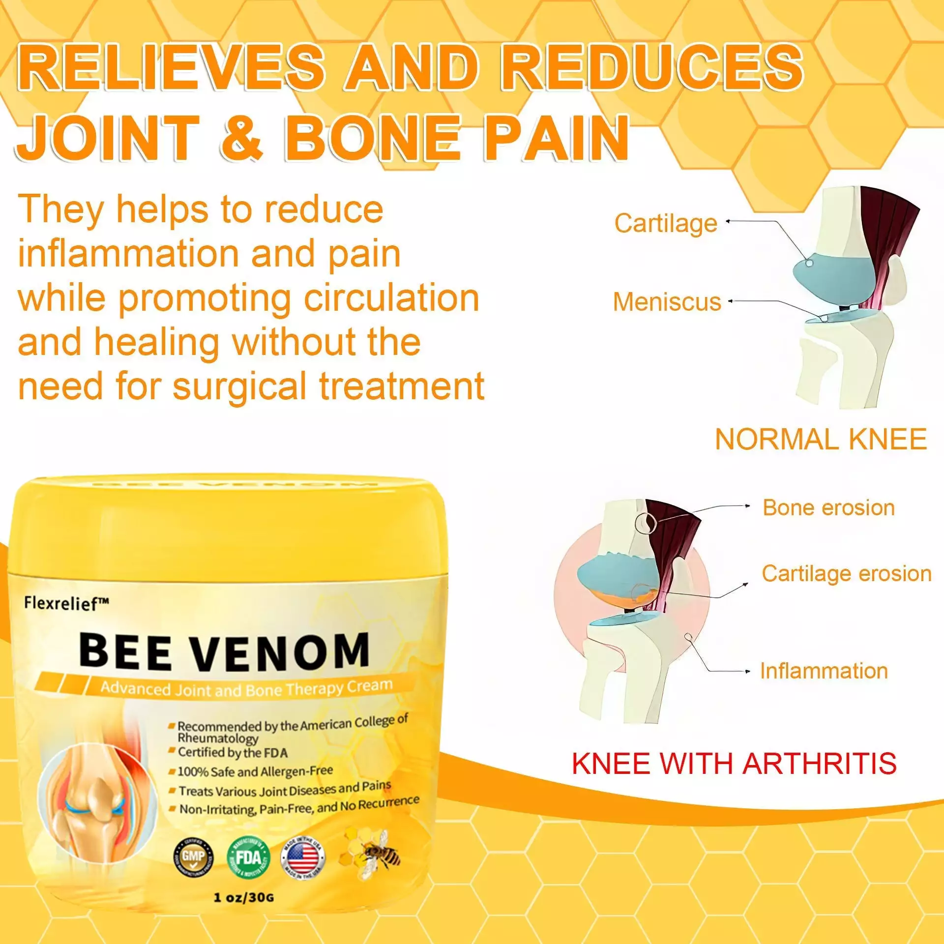 Are you suffering from joint pain, arthritis, or other orthopedic issues? Flexrelief™ Bee Venom Advanced Joint and Bone Therapy Cream may be the solution you’ve been searching for! Clinically proven and endorsed by experts, this breakthrough product can significantly relieve joint pain, inflammation, and stiffness, helping you regain mobility and improve quality of life—often in as little as 3-6 weeks.