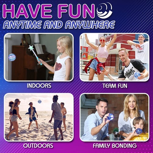 Floaty Flying Spinner has become a new level of must-have item in playgrounds all over the world. Perfectly suited for indoor and outdoor use, the flying globe toy is light enough to carry and play anywhere.