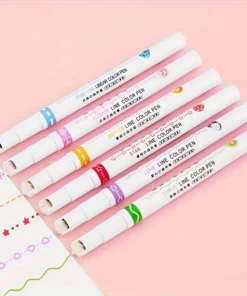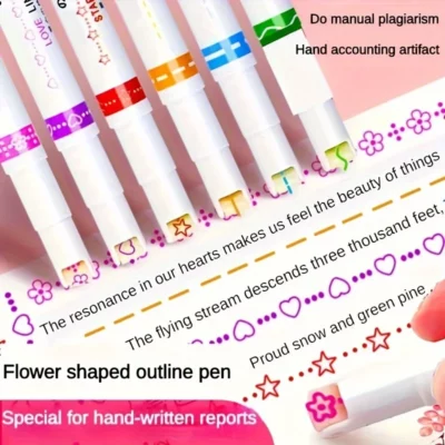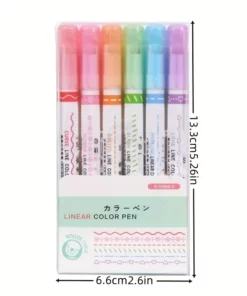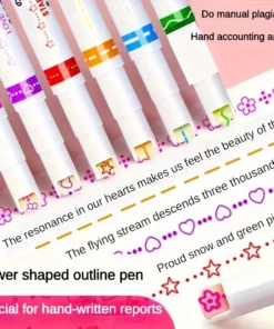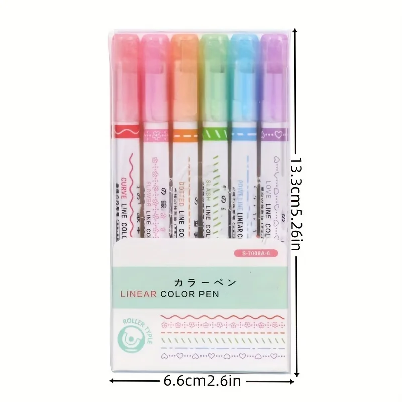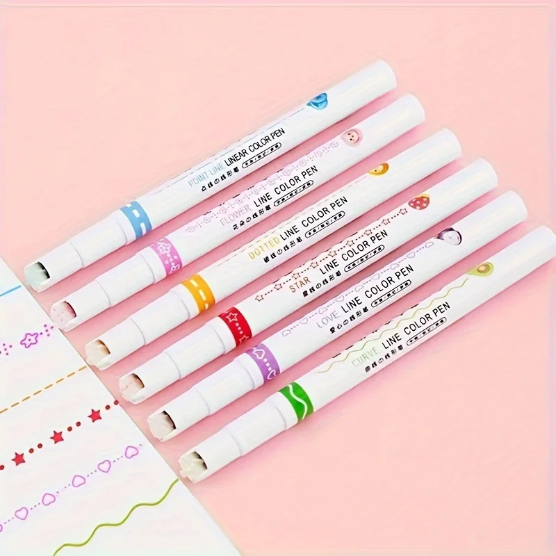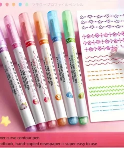 6pcs/set Flowers Outline Pens Roller Tip Curve Liner Highlighter Pen High Value Student Marking Key Mark Pictorial Stationery