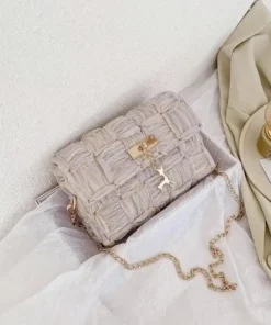 - 1 x foldable mesh bag template ,1 x ribbon yarn ,1 x chain handle
