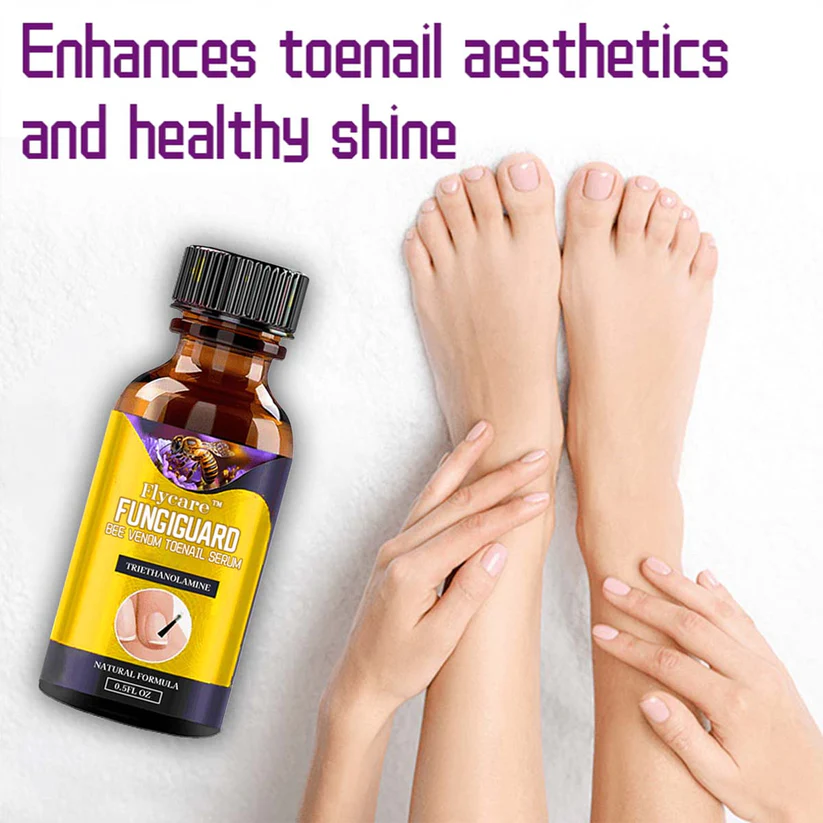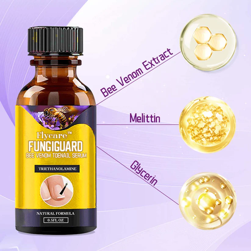 Flycare™ FungiGuard Bee Venom Toenail Serum addresses these problems with its potent antimicrobial ingredients and nourishing formula.