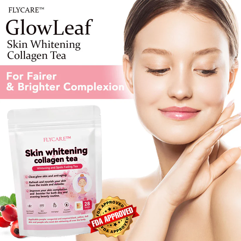 FLYCARE™ GlowLeaf Skin Whitening Collagen Tea detoxifies from within, providing you with flawless, radiant skin in as little as 6 days. Say goodbye to makeup camouflage and hello to a brighter, more confident you!