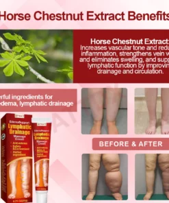 This extract contains aescin, which enhances vascular tone and reduces inflammation, while flavonoids offer antioxidant protection to blood vessels. Tannins strengthen vein walls and diminish swelling, and sterols support lymphatic function by improving drainage and circulation. These combined properties work synergistically to reduce fluid retention and alleviate discomfort, making it an ideal solution for managing edema and promoting healthier and more comfortable legs.