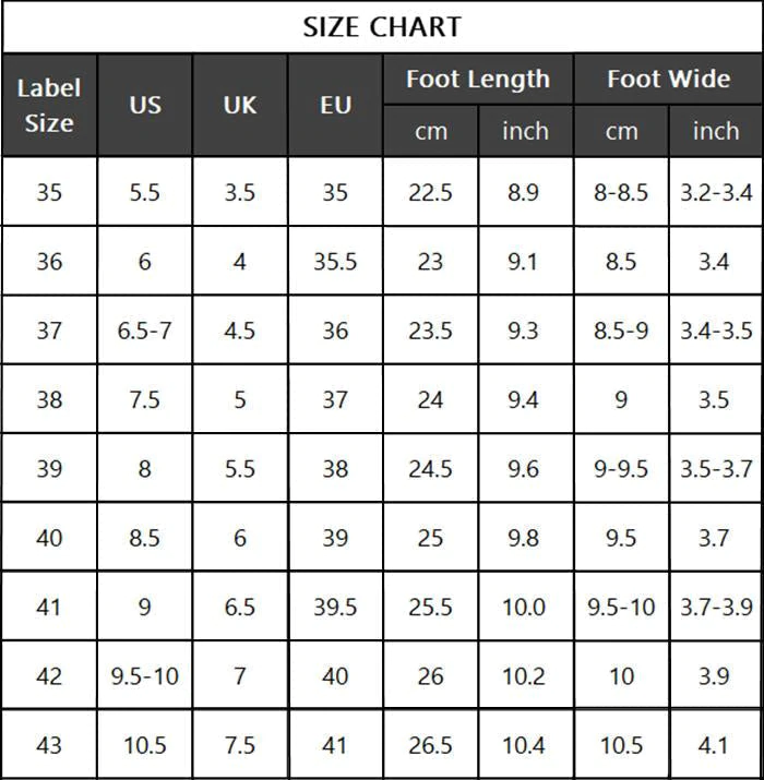 | Size | 35, 36, 37, 38, 39, 40, 41, 42, 43 |