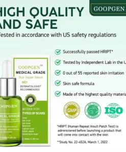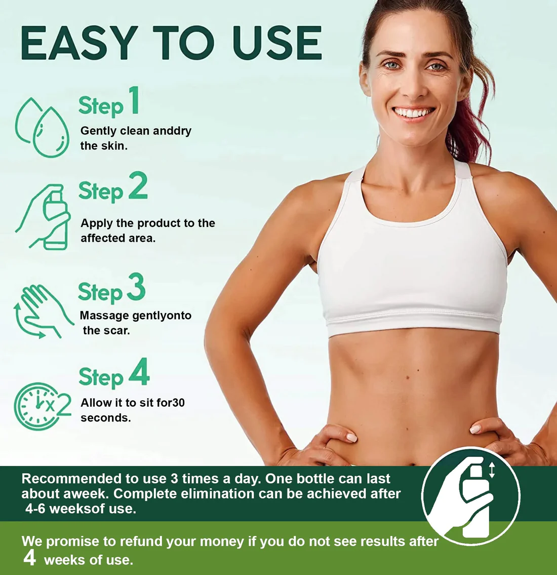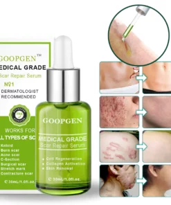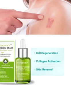 GOOPGEN™100% Advanced Scar Repair Serum– Made with allantoin and advanced scar Spray, our formula helps promote skin health, firmness, and elasticity to reduce the appearance of most types of scars, including surgical scars, burn scars, hypertrophic scars, and keloids. The silicone-based scar spray forms a breathable layer to increase the skin hydration, protect the scar tissue, normalize the collagen synthesis and balance the skin growth procedure,which can make your skin look smooth and even!