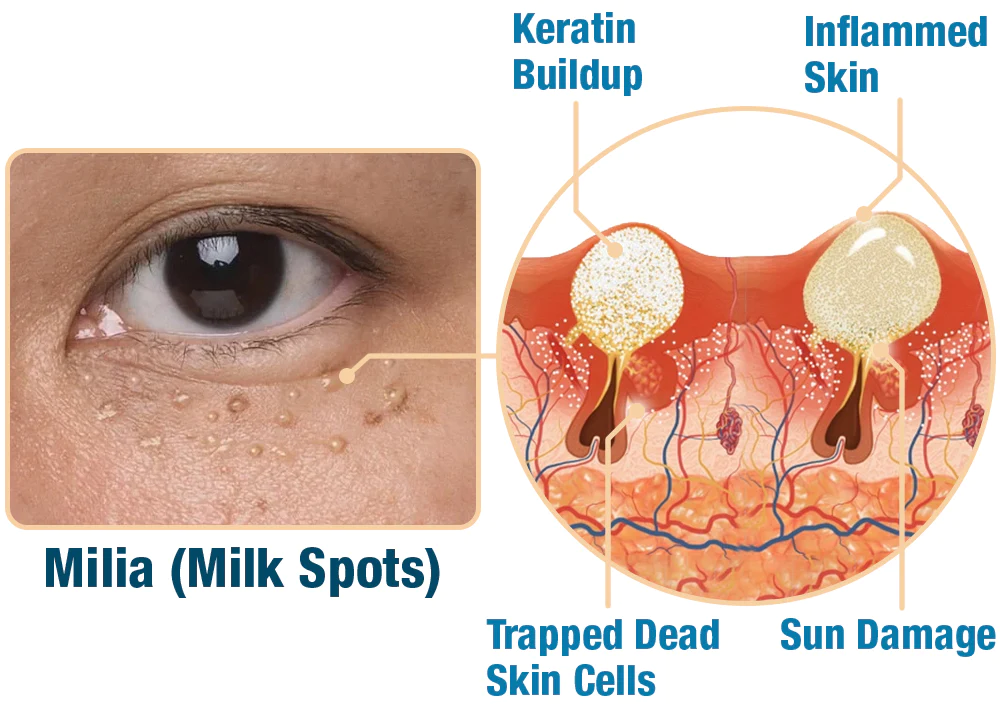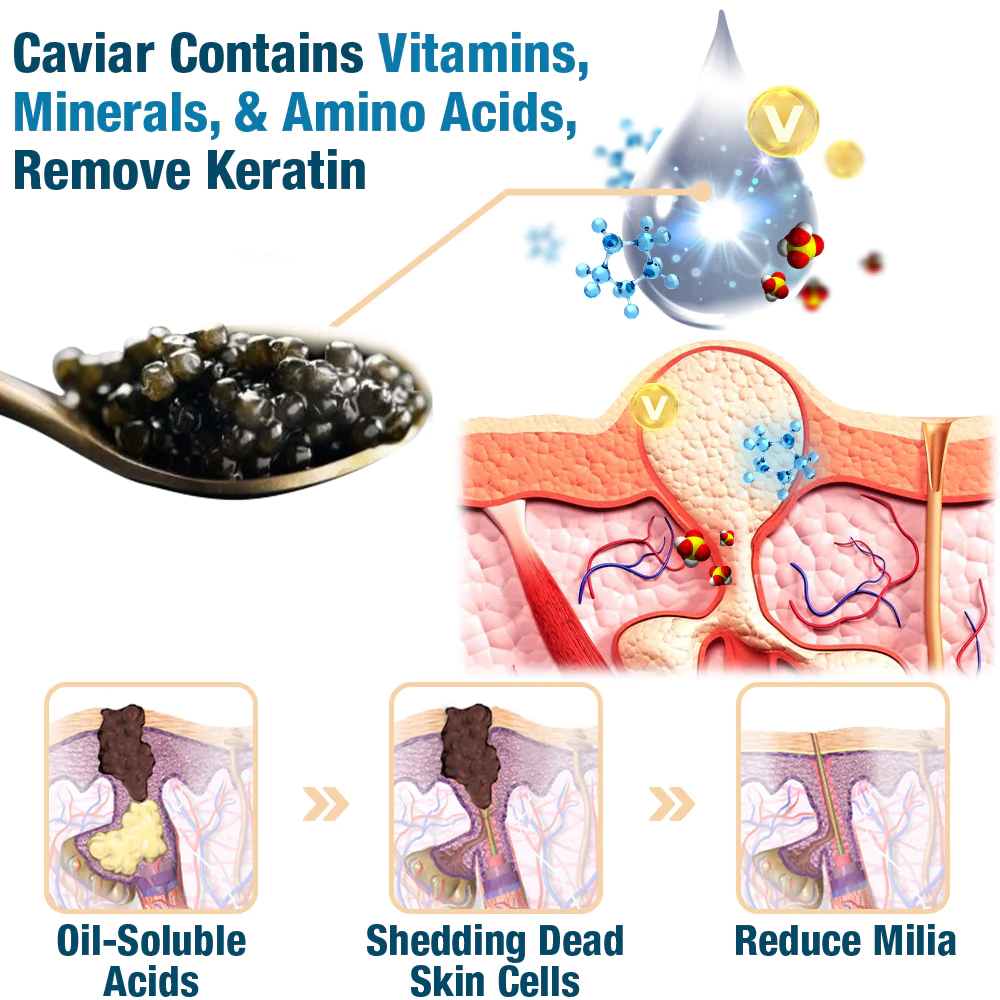 Our innovative flysmus™ CaviarLuxe Far Infrared Radiance Milk Spot Cream harnesses the potent benefits of Caviar extract, it rich in a plethora of vitamins, minerals, and amino acids. Caviar extract penetrates deeply into the pores, where it works tirelessly to break down the bonds that hold impurities together. By facilitating the skin’s natural exfoliation process, it gently removes dead skin cells, preventing the buildup of keratin that is often associated with the formation of Milk Spots.