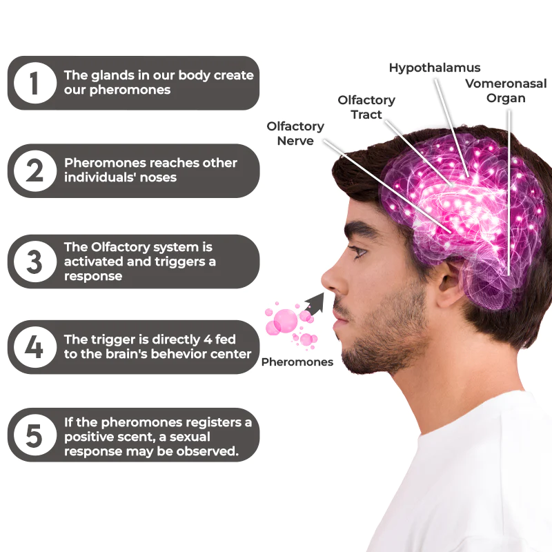The flysmus™ LesOdeurs Aromatherapy Body Perfume is mainly made by 600,000 jasmine quenched, 30kg of osmanthus and 70kg of damask rose petals concentrated. These scents can effectively influence pheromones, which are chemical messengers, play a crucial role in attracting individuals of opposite gender. These chemical messengers are responsible for inducing chemical reactions, triggering desires, regulating hormone levels, and even enhancing fertility when they are released.