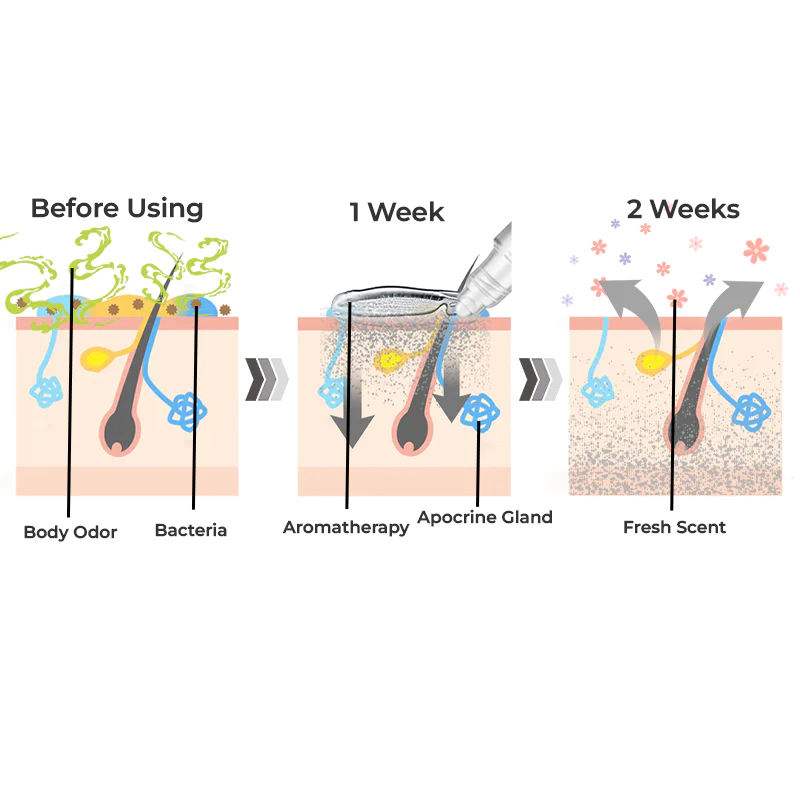 Our flysmus™ LesOdeurs Aromatherapy Body Perfume in addition to its distinctive fresh fragrance, there has triclosan that can control bacterial growth on skin and minimize body odor. It works by inhibiting the growth of odor-causing bacteria on the skin to eliminating body odor and changing to attractive pheromone scent. By using it, women will no longer suffer from body odour and will be able to unleash their unique feminine beauty through pheromone.