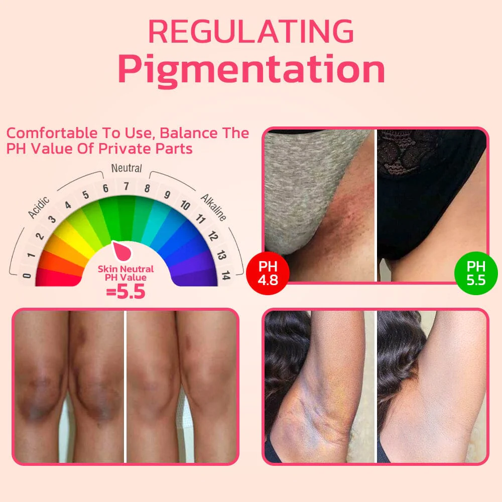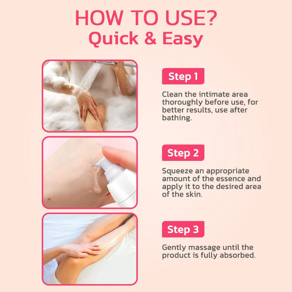 Inside flysmus™ VIO Whitening Pinkish Essence, you’ll find a special blend of ingredients formualted to balance the pH level in the intimate region. By regulating melanin production and reducing the appearance of dark spots, it helps achieve a brighter and more even skin tone, effectively addressing hyperpigmentation concerns. flysmus™ VIO Whitening Pinkish Essence offers a gentle exfoliation that unveils a brighter and more uniformly toned complexion. Its active components encourage skin renewal, leaving you with a glowing appearance.