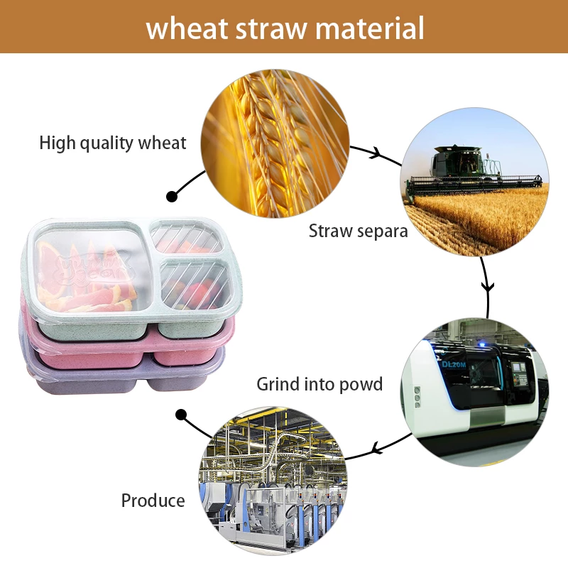 - Features: Made from natural wheat straw plastic, environment friendly and healty; 3 grids design, enable you to contain your fifferent dishes for lunch; The box can be heated in a microwave, a great choice for taking lunch to office, school, picnic…