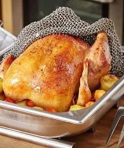 Our chainmail baking cover is made of eco-friendly stainless steel rings. It is a delightful design alternative to tin foil or aluminum foil. The main reason for its increasing popularity is that it can retain natural juices while keeping a crisp crust. Finished with square and smart shape, you can use it whenever you want to roast meat, chicken, beef, seafood, veggies or anything else. And leave it in the scullery after cooking. Don’t worry, it is very easy to clean and storage.