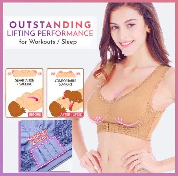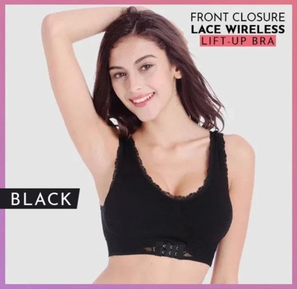Front Cross Wireless Side-Buckle Lace Lift Bra