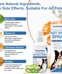 - Package: 1 x FurBuddies® Hot Spot Spray for Dogs Skin Sores and Irritations