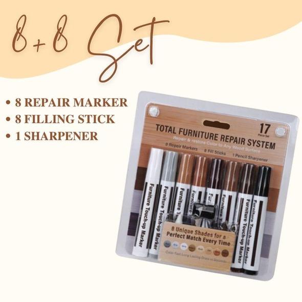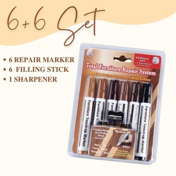 This assorted set easily repairs minor damages and restores color on wooden surfaces.