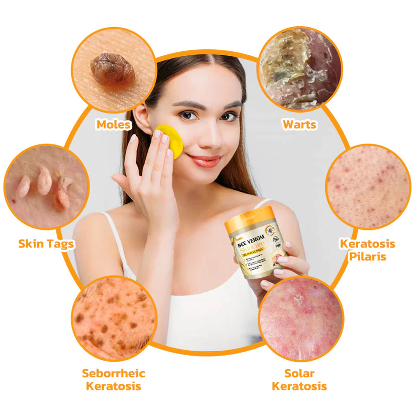 Furzero™ Bee Venom Skincare Treatment Pads harness the powerful properties of bee venom to target various skin irregularities like skin tags, warts, moles, and blemishes.