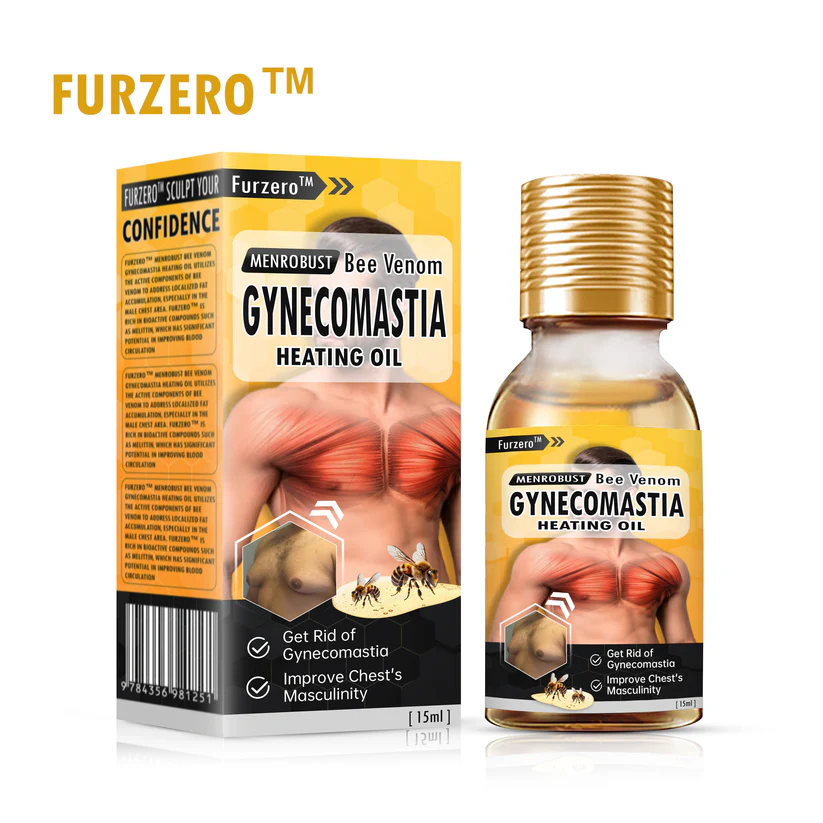 The Furzero™ MenRobust Bee Venom Gynecomastia Heating Oil utilizes potent ingredients of bee venom, to address localized fat accumulation, particularly in the male breast area. Enriched with bioactive compounds such as melittin, Furzero™ MenRobust Bee Venom Gynecomastia Heating Oil offers promising potential in improving blood circulation.