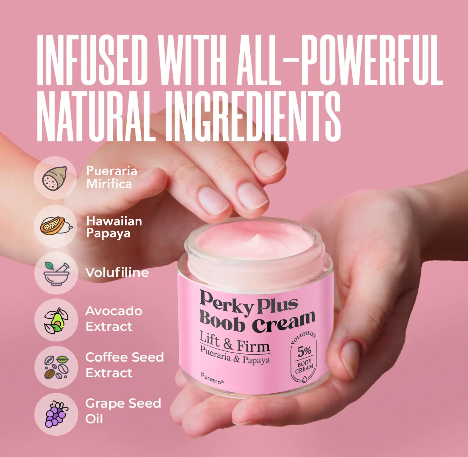 Furzero® Perky Plus Pueraria Papaya Body Cream is crafted with natural botanical formula that can enhance the shape and texture of the breast while providing them with a significant growth in size. It’s perfect for everyday women and post-partum moms and you’ll love our push-top dispenser.