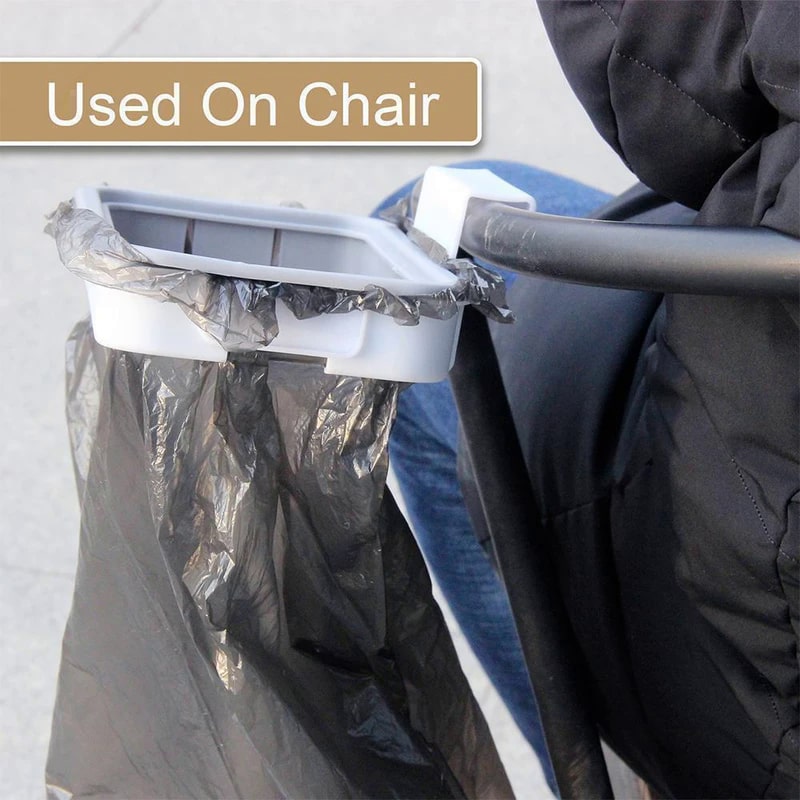 I purchased this gadget for when I am chopping up a lot of produce and don’t want to have to keep walking over to my trash can to dump the scraps. I just lift the gray sleeve off the white rectangular drawer clip. Place a bag in the hole and reattach the gray sleeve securing the plastic bag in place. It’s pretty simple and easy to use. The seller also included a roll of trash bags with my package (thank you). They are a little big for the amount of food scraps that I throw away. So I am currently using my dog waste removal bags which are a perfect smaller size for this item. The bags that were given to me are a perfect size to fit in my bathroom trash can.