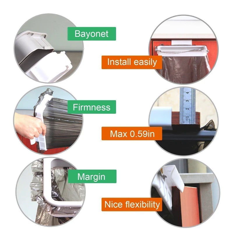 Garbage Bag Holder locks reused grocery bags, creating a strong and tight steal that can hold up to 10 pounds! When you’re doing cooking ,throw rubbish directly without opening trash cover!
