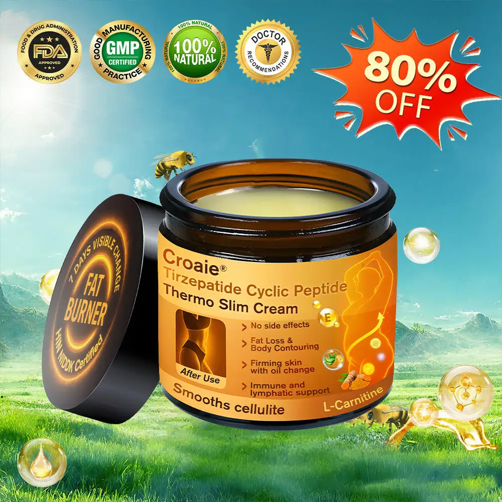 Croaie®NIDDK Tirzepatide Cyclic Peptide Thermo Slim Cream is a breakthrough formula developed by a team of over 30 metabolic health experts at the Mayo Clinic, based on more than 20 years of clinical research. This innovative cream combines NIDDK-Tirzepatide, medical-grade botulinum toxin, and powerful herbal extracts. The heat generated through skin absorption activates NIDDK-Tirzepatide to promote insulin secretion and inhibit glucagon secretion, thereby helping to regulate blood sugar levels and support weight loss. It also aids the digestive system and helps smooth out cellulite.