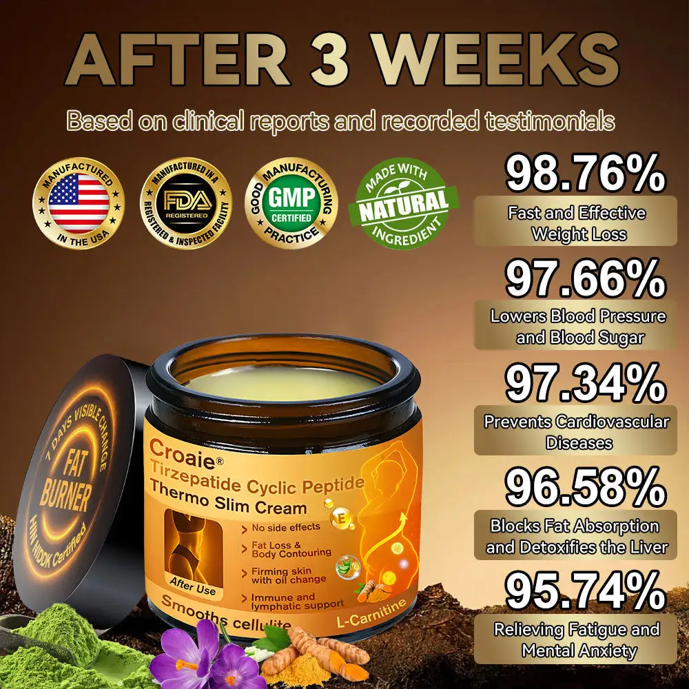 Clinically tested by endocrinologists, Croaie®NIDDK Tirzepatide Cyclic Peptide Thermo Slim Cream has been shown to significantly improve obesity and other health concerns in as little as 7 days.