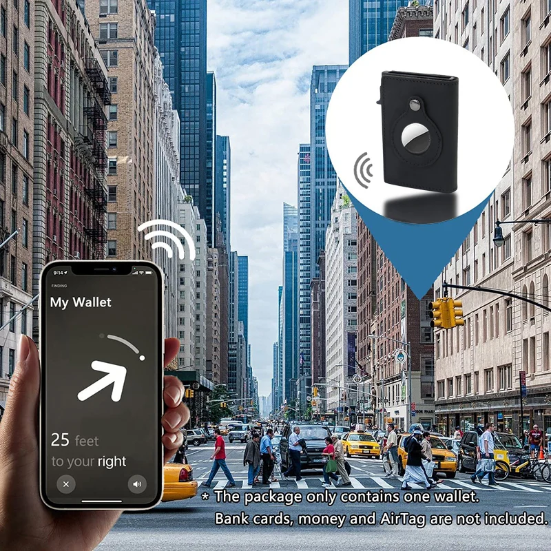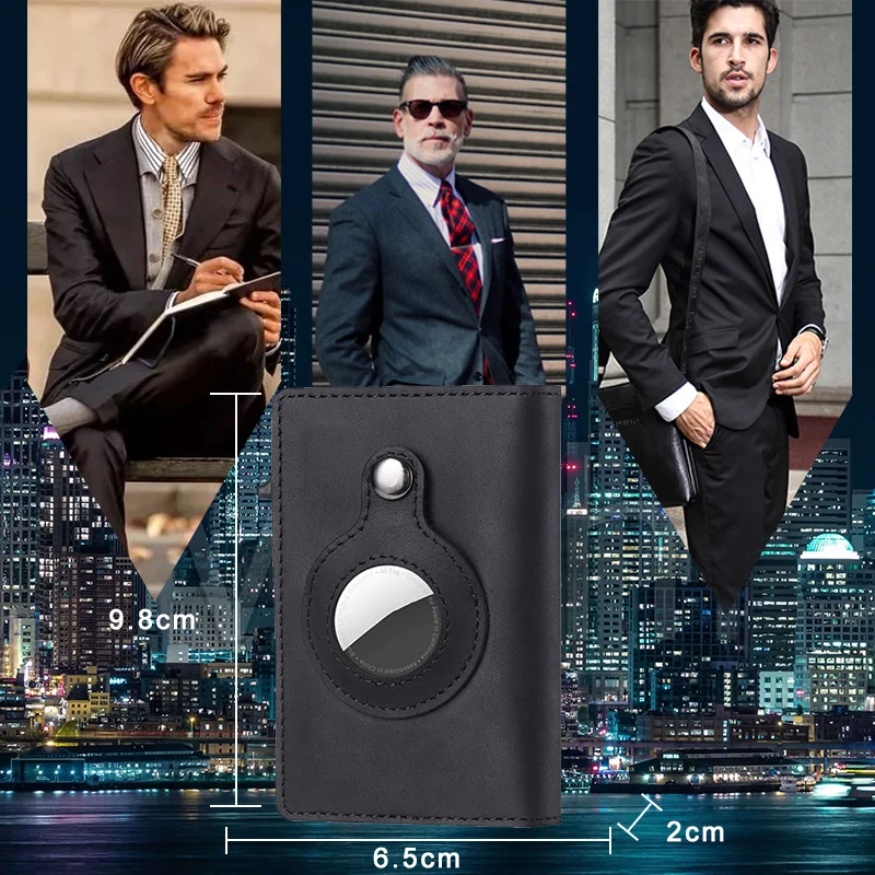 Our Premium Genuine Leather Air Tag Card Holder is designed to fully support Apple AirTag (not included). It is the solution for those who tend to lose their important items more than others. Use your phone to steal your stuff or see where it was last on a map.