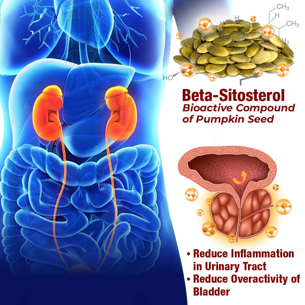The DynaMen Wellness Patch is formulated with a potent ingredient—pumpkin seed. Pumpkin seed is known for its remarkable properties in addressing urinary health concerns. Pumpkin seeds boast a rich content of beta-sitosterol; they have anti-inflammatory and antioxidant properties, potentially helping to reduce inflammation in the urinary tract and improve urinary health issues.