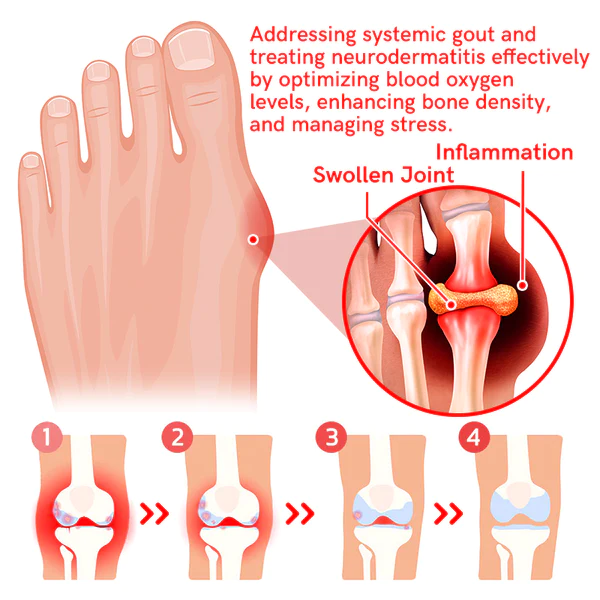 Its unique combination of technologies provides a highly effective means of improving blood oxygen levels, optimizing bone density, and effectively managing stress. Focusing on addressing systemic gout and effectively treating neurodermatitis creates an advanced therapeutic tool and simultaneously demonstrates significant results in neurodermatitis treatment.