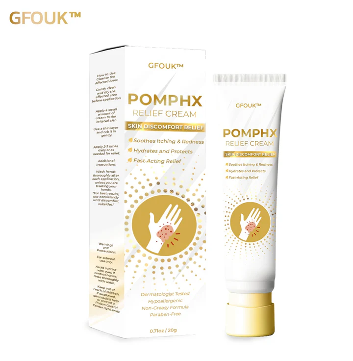 GFOUK™ PomphX Relief Cream has been clinically tested and validated for its efficacy and safety in treating various skin conditions, including rashes, eczema, intertrigo, and pompholyx. The formulation of PomphX Relief Cream contains a synergistic blend of active ingredients known for their therapeutic benefits in dermatology.