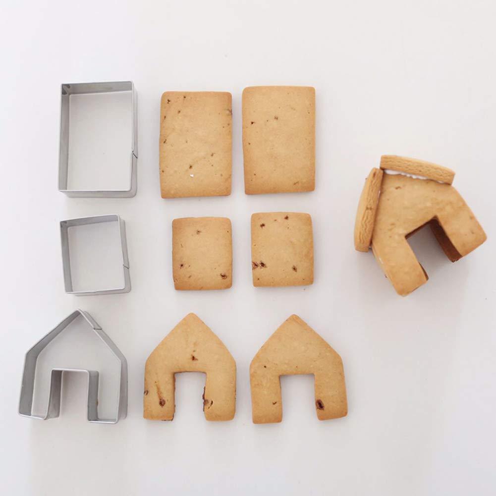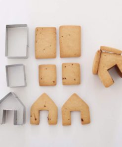 - Each set includes cookie cutters to create the front, side, and roof pieces, but you’ll use each cutter twice to create the pieces you need to assemble your mini gingerbread house.