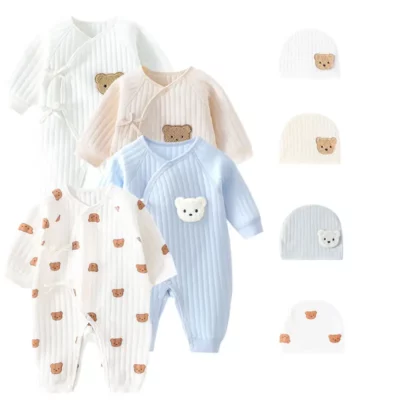 Boys Girls Bodysuit Newborn Onesie Clothes Cotton Toddler Home Wear 0-6M Thickened Spring and Autumn Clothing