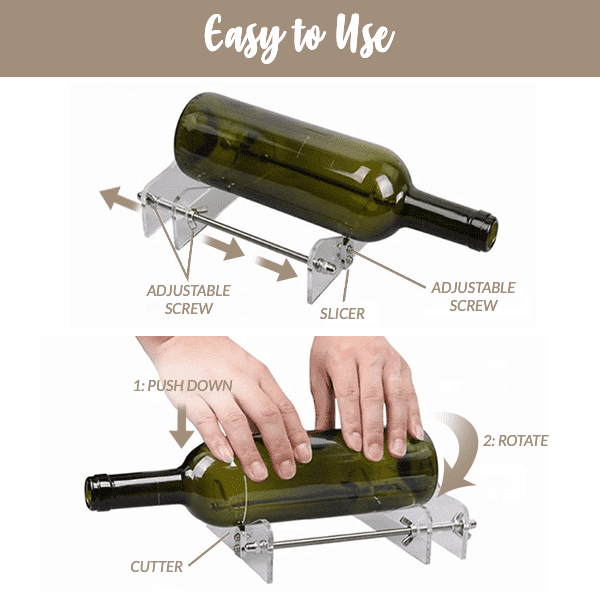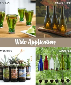 It comes with a bottle cutting machine, a glass cutter tool, cut-resistant gloves for your safety, a simplified instruction manual & glasspaper to smooth the edges of cut glass. It works great with a variety of empty bottles like wine bottles, beer bottles, or even mason jars.