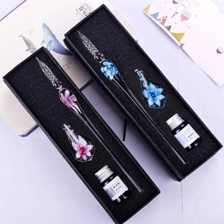 Glass Calligraphy Pen Set with Ink and Pen Rest