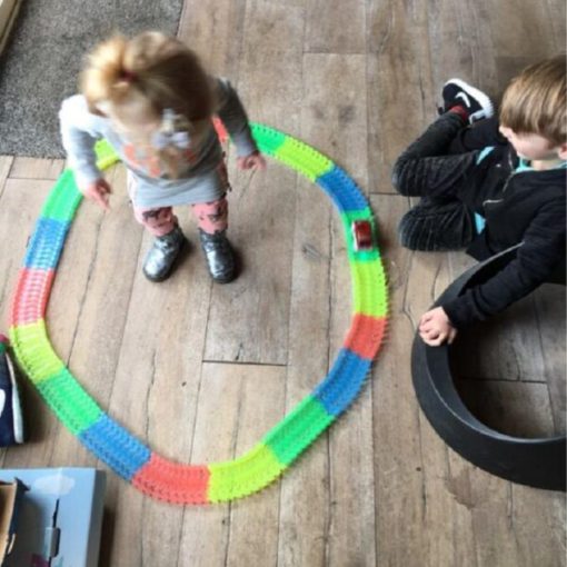 You will bring even more fun to playtime by adding this Glow Tracks Racing Set to your child’s toy room. This is one of the coolest toys for your kid! Assemble the longest race track and make your kid the coolest kid in town! When the lights are off there is nothing to fear! Night time has its own funny toys to play with, just as this Glow Tracks Racing Set!