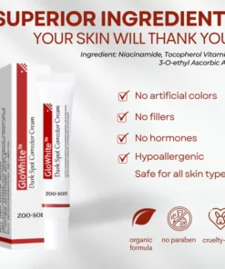 GloWhite™ Dark-Spot Corrector Cream is potent but a lightweight formula that is ripe with a concentration of brightening ingredients that minimizes the appearance of dark spots left behind from breakouts by cell renewal.