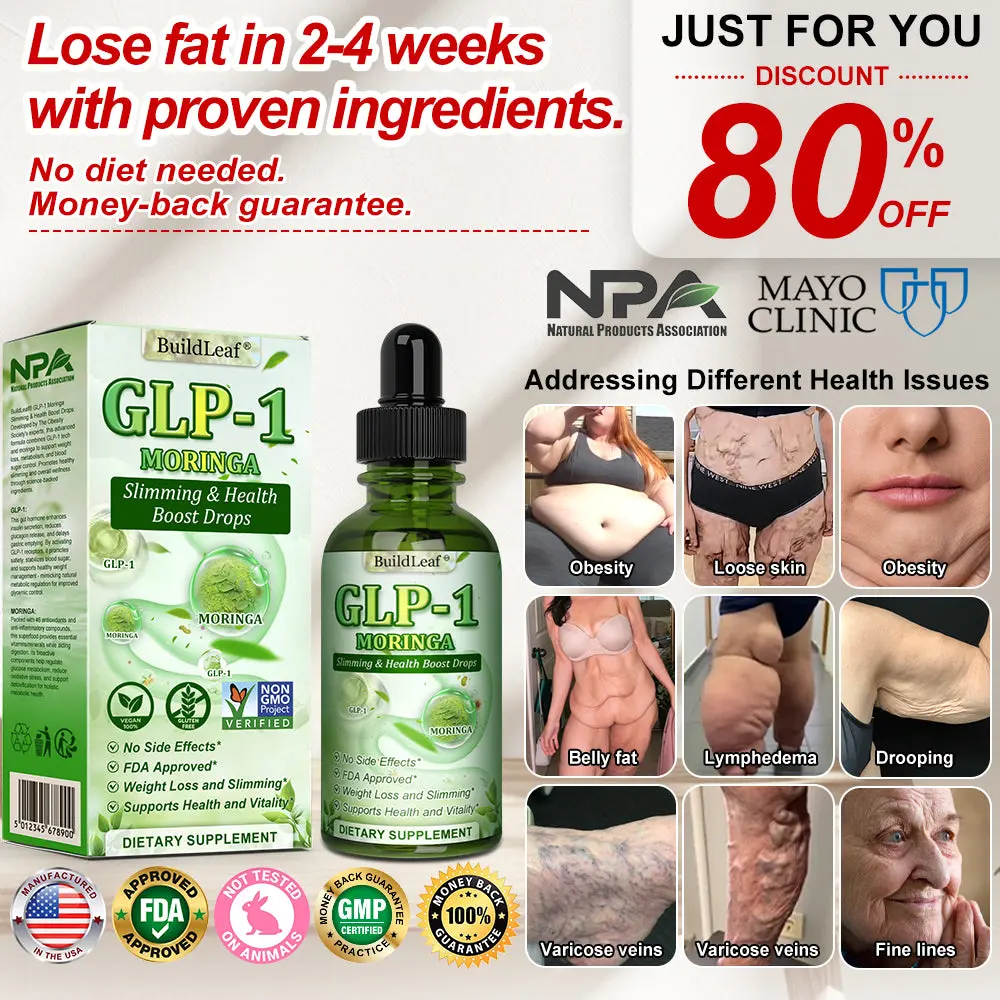 In clinical studies, users of BuildLeaf® GLP-1 Moringa Herbal Oral Liquid have experienced impressive results, with some individuals shedding up to 2-3 pounds of stubborn fat within just one week. This is achieved with a simple 5ml dose—equivalent to one dropper—targeting and burning visceral and abdominal fat, helping to promote a leaner body composition without the need for intense exercise.