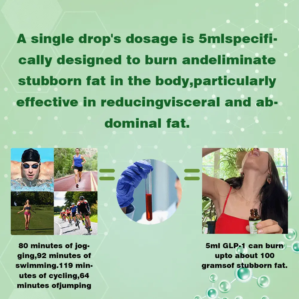 Studies have shown that 5 ml of Meglutide Oral Solution can burn up to about 100 grams of stubborn fat. And it takes a long time to burn 50 grams of fat through exercise (80 minutes of jogging, 92 minutes of swimming, 119 minutes of cycling, 64 minutes of jumping rope). The dose of one dropper is 5 ml and is specifically designed to burn and eliminate stubborn fat from the body, especially effective in reducing visceral and abdominal fat.