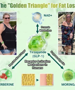 Tirzepatide combined with apple cider vinegar and the powerful Moringa extract, helps the body utilize fat stores more effectively for energy. By improving insulin sensitivity, it accelerates fat burning, especially during calorie restriction or increased physical activity. The apple cider vinegar works to stabilize blood sugar levels, preventing excess glucose from being stored as fat.