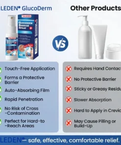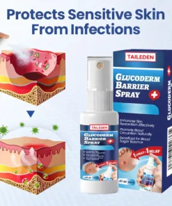 Taileden® GlucoDerm Barrier Spray is designed to help people with diabetes keep their feet healthy. It boosts blood circulation, helps heal foot ulcers and sores faster, and provides gentle care for diabetic skin. The cream hydrates deeply to prevent dryness and cracking, while also protecting sensitive skin from infections. Its smooth, quick-absorbing formula makes it easy to use every day, giving you an effective way to care for your feet.