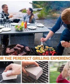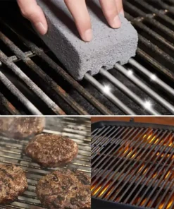 It’s safe for use on all barbecue grill grates, including porcelain enamel, cast iron, stainless steel, steel, and chrome. This convenient starter kit comes with one GrillStone cleaning block and one 7″ EZ-Grip handle.