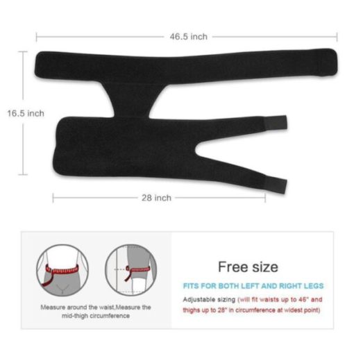 All-in-one rap piece that supports hip, groin, hamstring, thigh and sciatic nerve pain. It has a customized feature that helps you adjust it to the desired size and seizures. The excess Velcro added on it adds additional features for a more even fit and also adds versatility as it can be worn on either the right or left leg.
