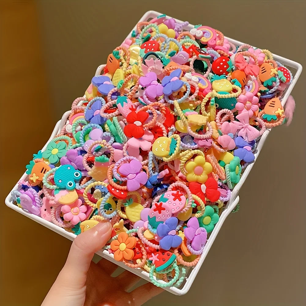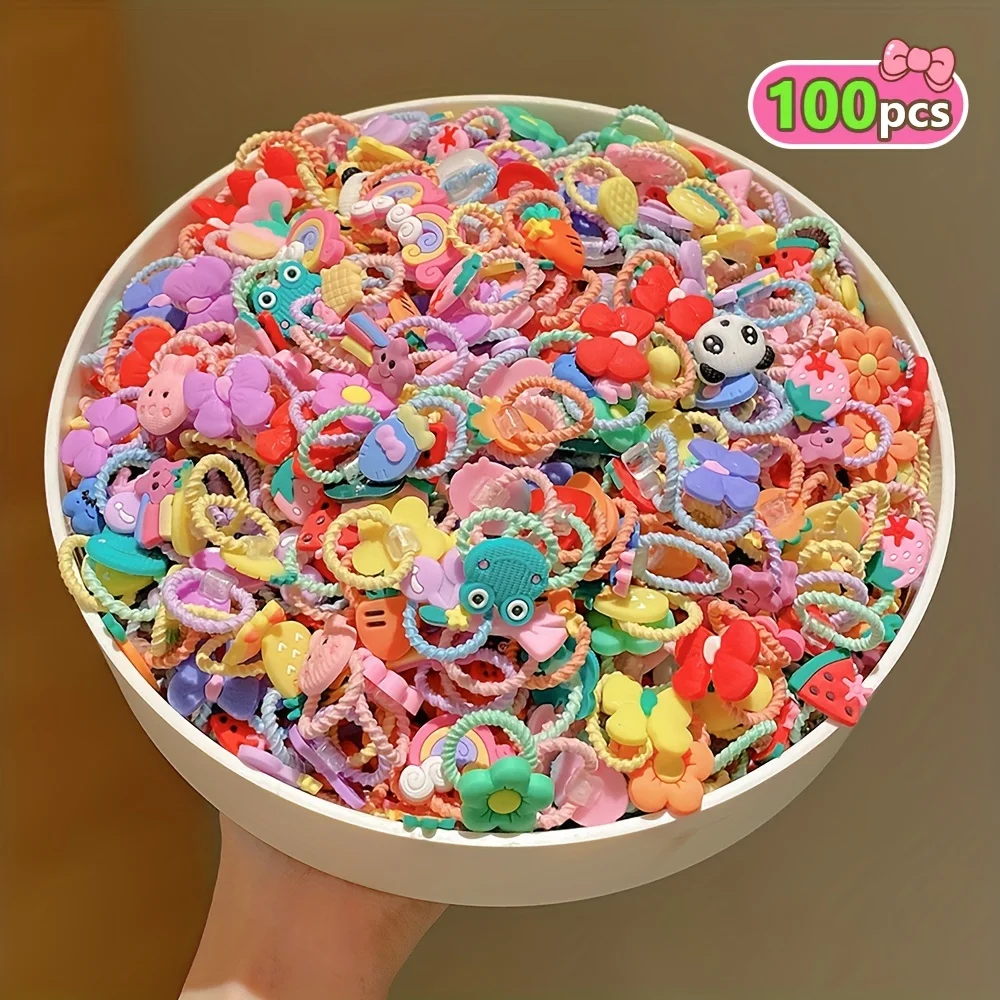 50/100 Pieces of Cute Thumb Hair Ties for Girls, High Elasticity, Does Not Hurt Hair, Sweet Little Girl Hair Rope, Kidsren’s