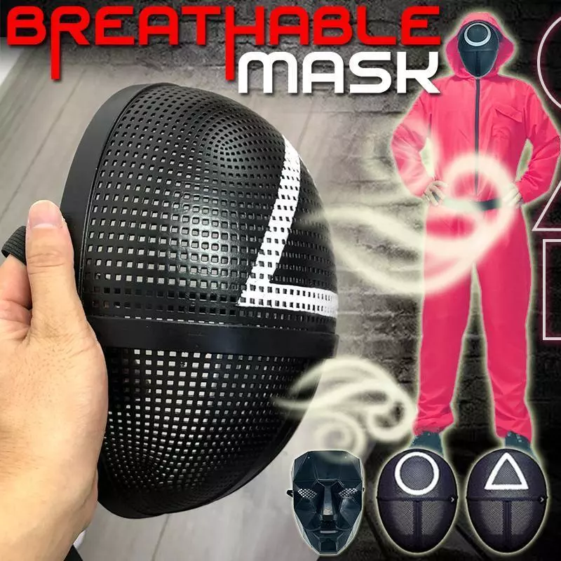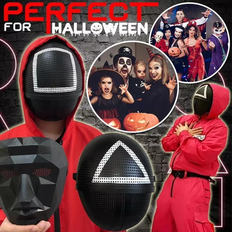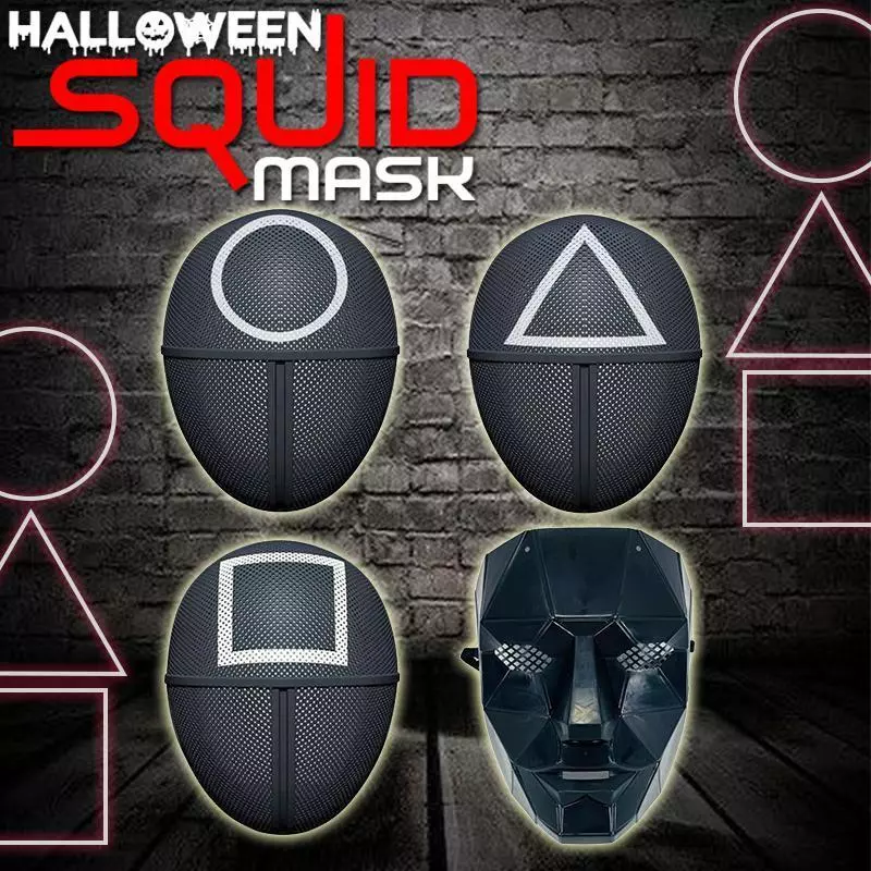 The Halloween Squid Mask has four styles, the same style for the man in red (triangle, round, square) and the same black mask as the super villain Boss. Choose your favorite style and portray your favorite figure on TV.