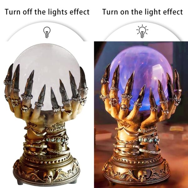 Halloween Witch Mysterious Crystal Ball is a tabletop decoration and acts as a plasma ball; Therefore, when you touch it, the lightning goes right to your fingertips.